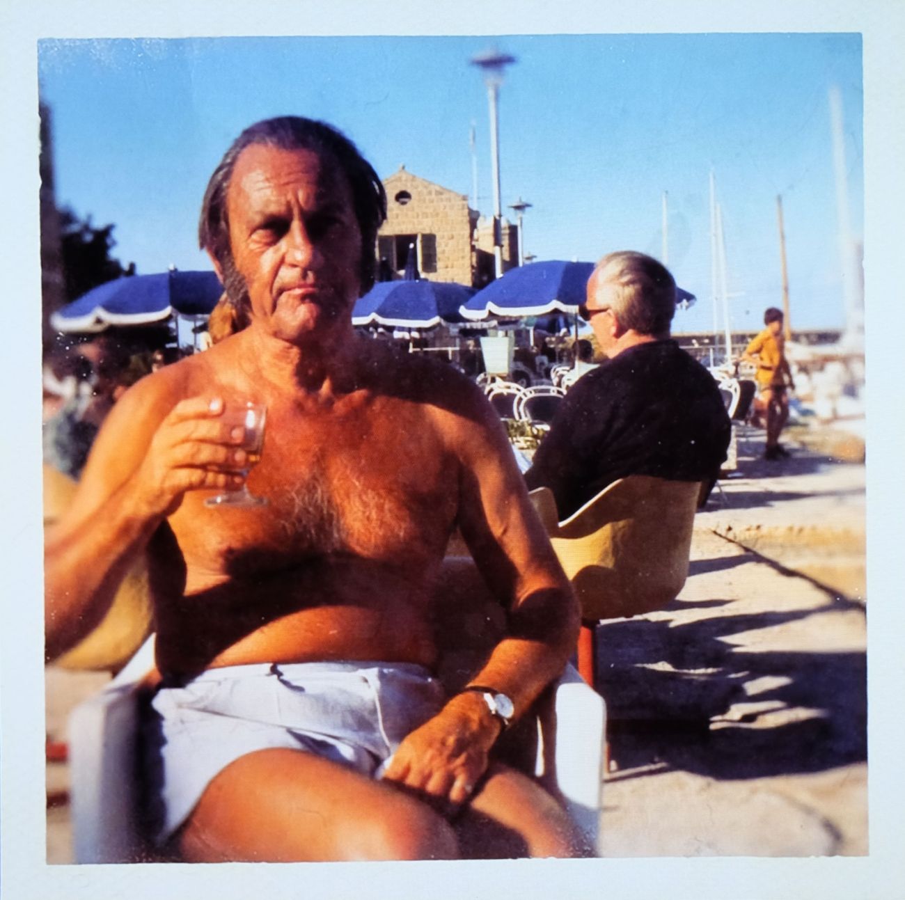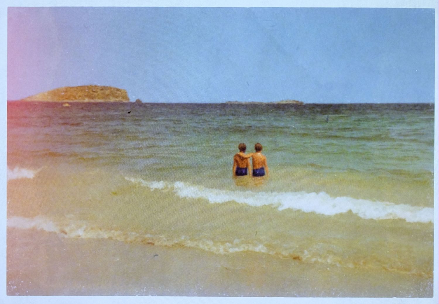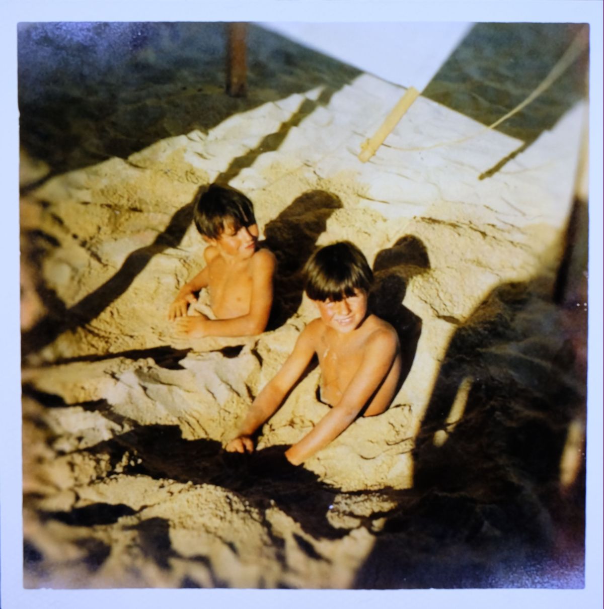 Él me preguntaba por las vacaciones familiares, pero la verdad es que no íbamos de vacaciones. Si íbamos, era con familias de otros, nunca con nuestros padres, pero yo no quería transmitirle eso a mi hermano, porque era deprimente, triste y no muy normal. Así que en vez de decirle «no nos íbamos de vacaciones porque nuestros padres son una mierda», le decía «sí, nos íbamos constantemente. Mira, esto es una foto de nuestras vacaciones en Francia». Conseguí una foto nuestra en la playa. Y pareció convencerle. Yo le daba una foto y su imaginación hacía el resto.