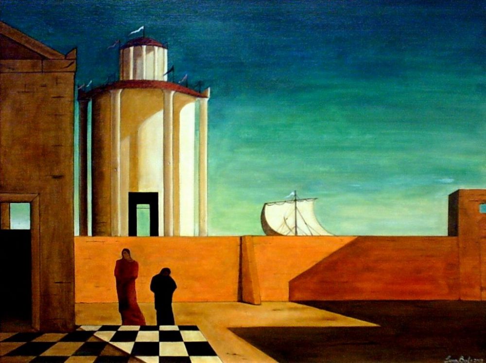 Pero no ha sido el único. Pintura y fotografía comparten muchas cosas, pero ambas son, en esencia, luz y formas de mirar la luz. Y si Hopper es el gran referente cuando hablamos del aislamiento del individuo en espacios interiores, la soledad y el vacío del mundo exterior es terreno, entre otros, de Giorgio de Chirico.