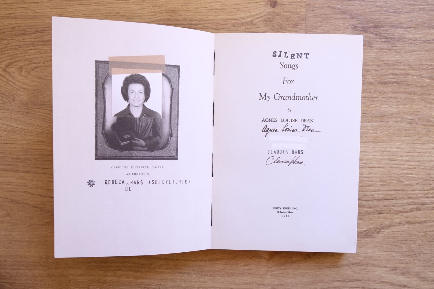 Claudia Hans es un ejemplo de todo esto. Hans estaba en Nueva York y paseaba entre estanterías llenas de libros cuando sus ojos se toparon con uno titulado ‘Songs for My Grandmother’, escrito en 1945 por Agnes Louise Dean. Decidió comprarlo y utilizarlo como base para contar la historia de su propia abuela con fotografías y documentos recuperados e interviniendo los poemas del libro original.